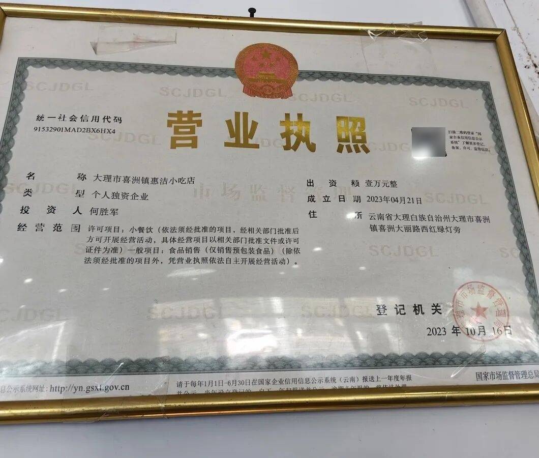 经营地址:大理市喜洲镇喜洲村委会镇南路农村信用社旁