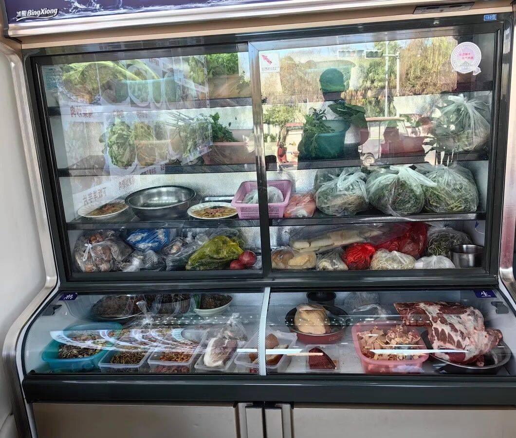 3、保鲜柜食材分类摆放,菜品新鲜;