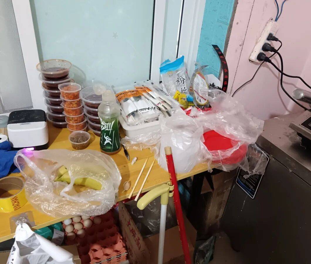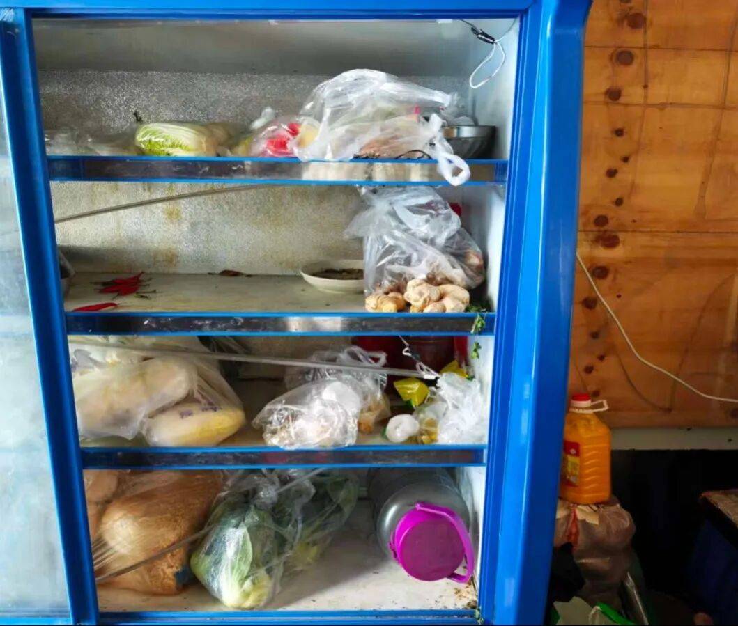 4、保鲜柜内有塑料袋、生熟食混放。