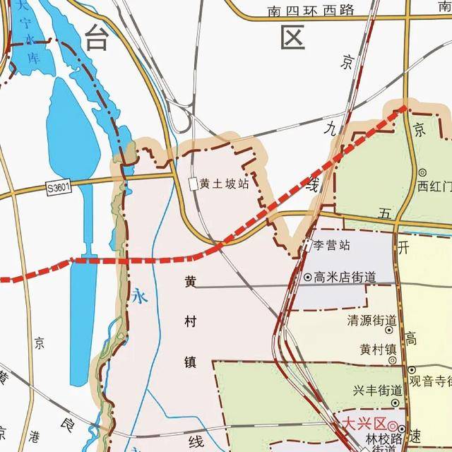 《北京市行政区域界线基础地理底图(大兴区)》显示,京良路自新发地至永定河这段整体呈东北——西南走向,虽然只有大约10千米,却在丰台、大兴两区之间“反复进出”,并与多条铁路交叉。