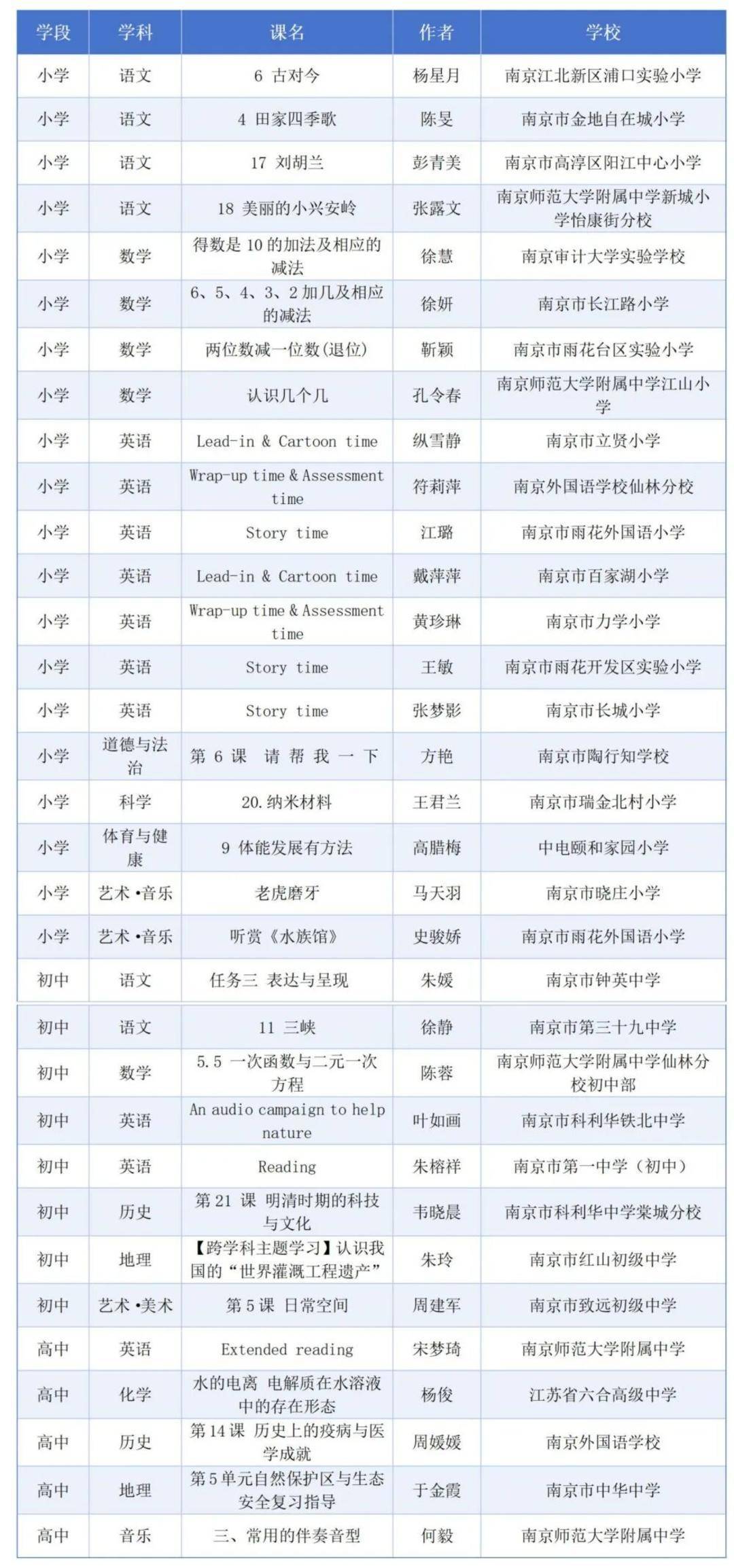 2025年教育部基础教育精品课部级精品课获奖名单最近公示,南京市共59节课获奖,获奖数占全省总数近40%,位列全省第一,其中特殊教育赛项的8节课更是100%获奖。恭喜以下获奖教师。