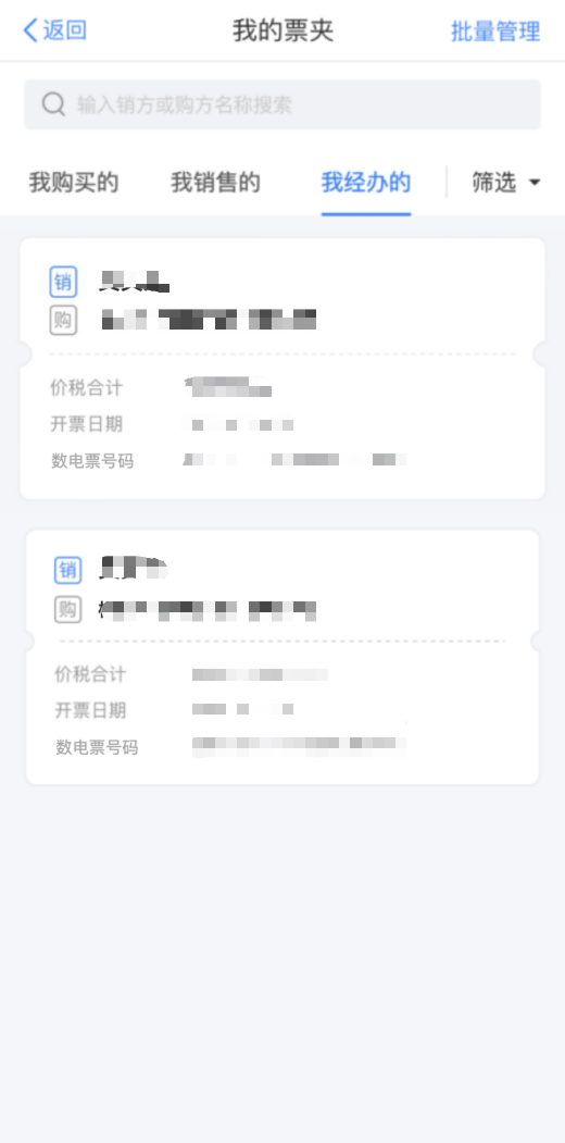 销售方完成发票开具后,发起发票代开的经办人也可登录个人所得税APP查看发票。经办人进入“我的票夹”功能,在“我经办的”页签下可查看到发票。点击发票卡片,进入发票详情页。