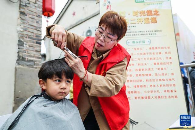 3月20日,志愿者们在陶朱街道三都老街春日共富市集上义务理发。新华社记者 徐昱 摄
