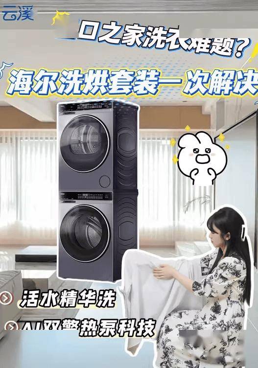 举个例子。这是海尔的一款真实产品,“云溪”洗烘套装。它有去宠物毛发的功能,也可以一次性解决洗烘难题。