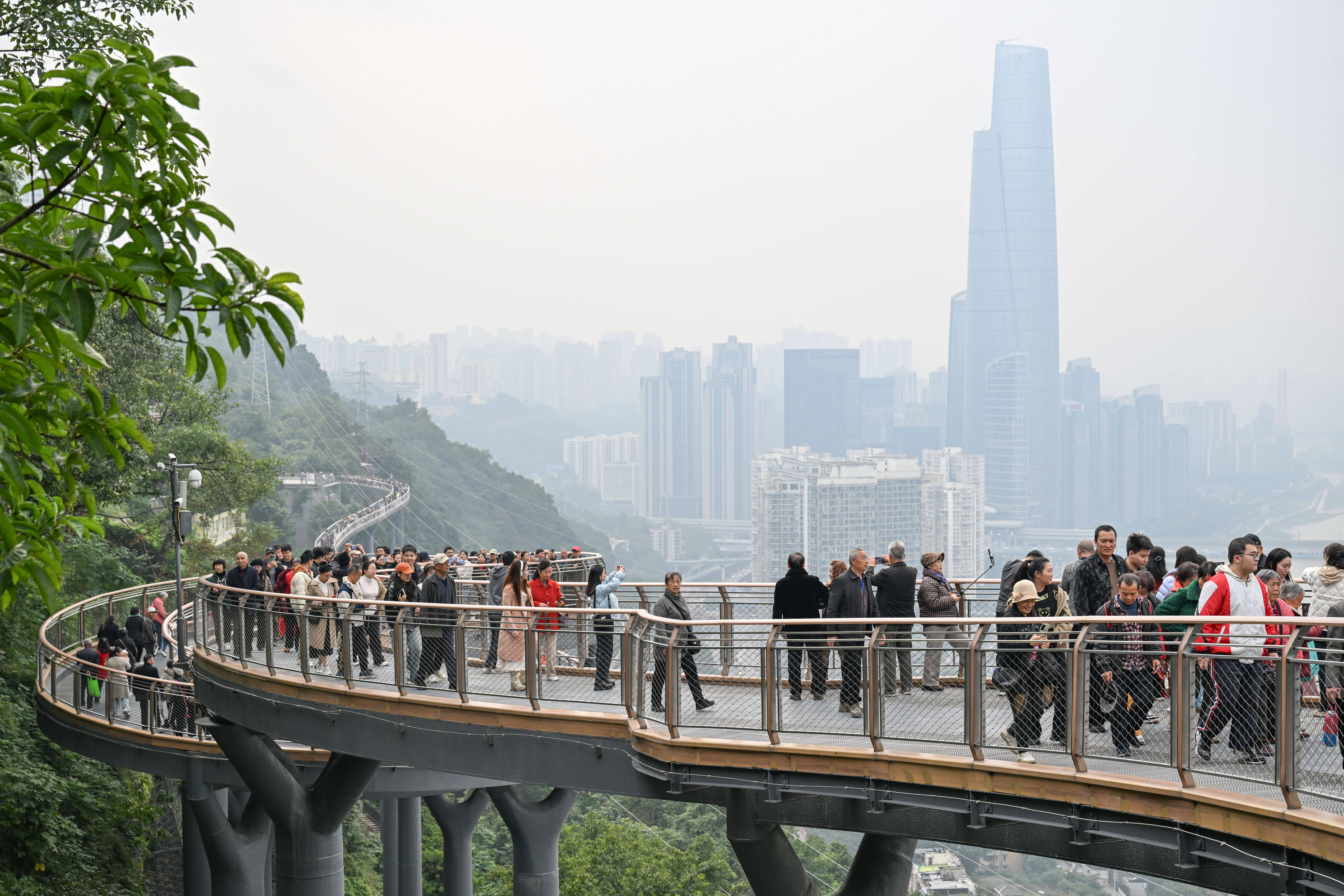 近日,重庆半山崖线鹅岭栈桥正式对外开放。该栈桥全长460米,宽3米,最高处距地面28米,依天然崖壁而建,将鹅岭公园与佛图关公园连为一体,独特的观江视野使其成为重庆旅游观光的新晋地标。