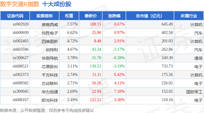 数字交通R(480075)指数十大成份股详情如下: