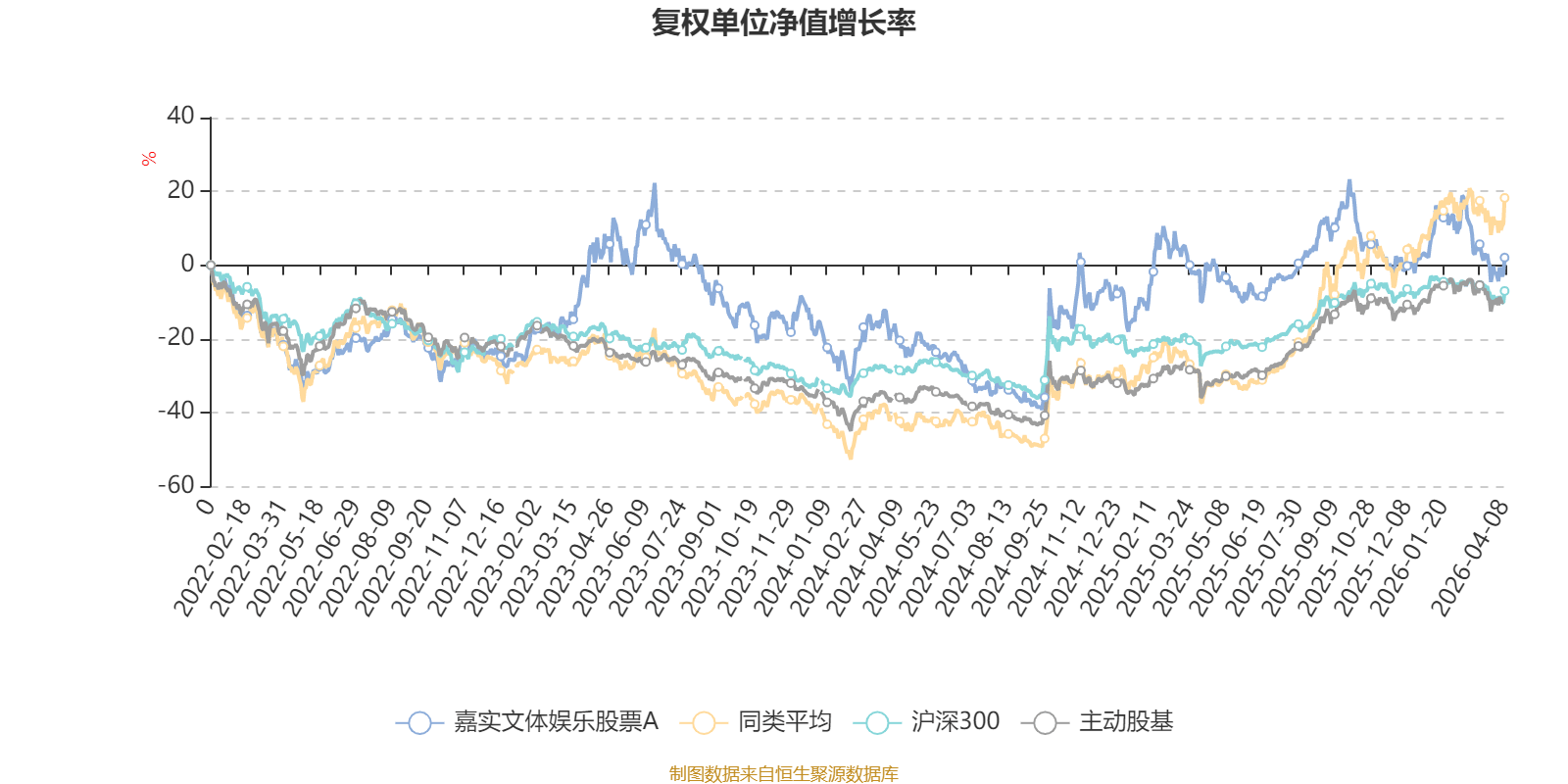 截至4月8日,嘉实文体娱乐股票A近三个月复权单位净值增长率为-6.01%,位于同类可比基金54/63;近半年复权单位净值增长率为-14.64%,位于同类可比基金59/63;近一年复权单位净值增长率为13.12%,位于同类可比基金61/63;近三年复权单位净值增长率为-3.86%,位于同类可比基金48/53。