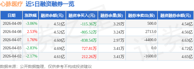 证券之星消息,截至2026年4月9日收盘,心脉医疗(688016)报收于100.82元,下跌3.06%,换手率1.51%,成交量1.86万手,成交额1.89亿元。