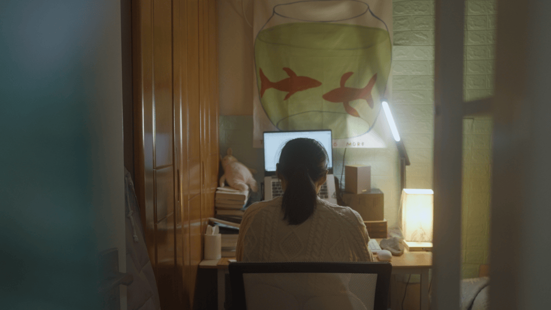 这是位于北京五环外城中村的一居室。入口处鞋架上摆着七八双鞋,常年磨损后,底薄薄的,鞋面变成大差不差的灰色;室内两张书桌,一张挨着灶台、另一张靠床,都堆着稿纸和书本。收工的深夜,她利落地准备晚饭:青菜按在锅底烫软,主食是三秒就熟的面线。灶台边的书桌上,她边吃边写。