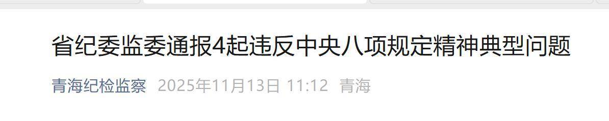 据青海纪检监察近日消息,为进一步严明纪律,持续加固中央八项规定堤坝,释放全面从严、一严到底强烈信号,通报已查处的4起违反中央八项规定精神典型问题。