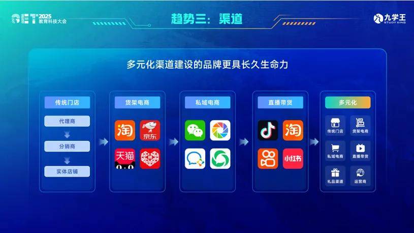 终端销售的趋势,从原来的传统渠道,即有代理商到店面的传统销售的方式;又经历了货架电商,又到了私域电商,到了现在非常火的直播电商……从传统的线下到目前传统的线上。
