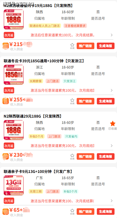 - 产品正规,背书强大:所有卡品均直接来自运营商,资质正规,佣金透明,解决了推广者最大的信任之忧。
