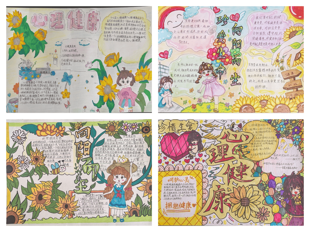 心理健康手抄报大赛中,学生们以“生命如花”“向阳而生”为主题,用手中的画笔描绘出对生命的理解与热爱。参赛作品主题丰富,形式多样,有的以大树比喻生命,根系代表成长基础,枝叶象征发展潜能;有的作品以漫画形式呈现“情绪管理四步法”,学校组织专业教师对作品进行评奖,形成了浓厚的生命教育氛围。