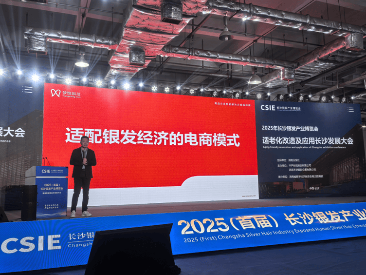在近日举行的2025首届长沙银发产业博览会上,梦饷科技高级副总裁钱东清以“私域生态赋能银发经济,构建老年友好消费新场景”为主题发表主旨演讲,深入剖析银发经济带来的巨大市场机遇,并以梦饷科技的创新实践为例,阐述了私域电商助力银发经济的创新探索。