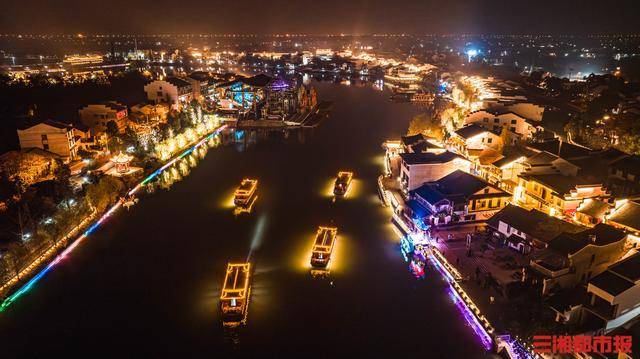 “带孩子来这里,一边玩一边看戏,很有参与感。”长沙市民李女士一边给孩子拍照一边感慨。热闹的,不只是靖港。凤凰古城夜幕下亮灯启动,沱江两岸灯影流转,民俗展演与科技光影交织,吸引万名市民游客驻足打卡。
