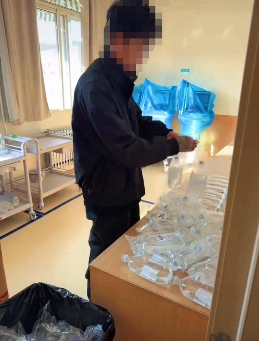 青岛某医院护士带男朋友进医院配药室。视频截图