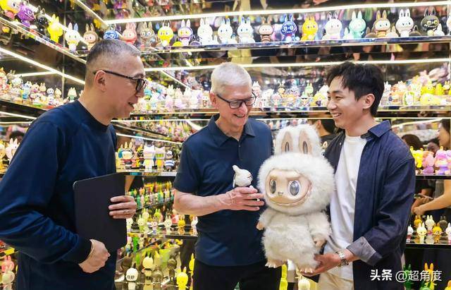 苹果CEO库克今日现身上海Labubu巡展,泡泡玛特CEO王宁陪同并送上Labubu iPhone限定版。