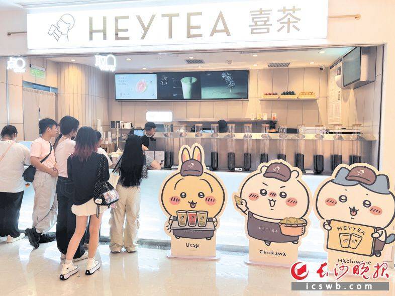 被Chiikawa可爱形象吸引的顾客,在喜茶门店排队购买联名产品。长沙晚报全媒体记者 陈星源 实习生 贺帅 摄影报道