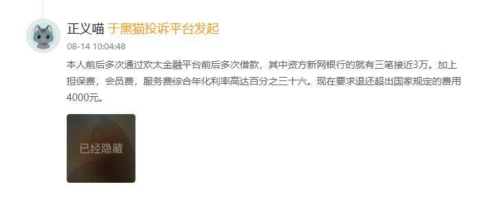 这些会员费也成为推高实际利率的主要推手。8月14日,一位借款人投诉,在欢太金融平台多次借款,其中提供资金的新网银行就有3笔接近3万,加上担保费、会员费、服务费,综合年化利率高达36%。