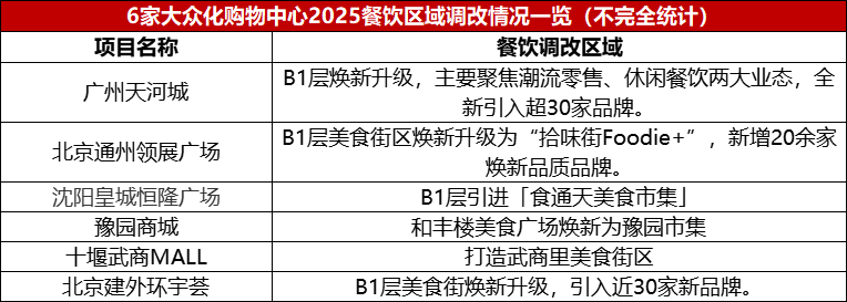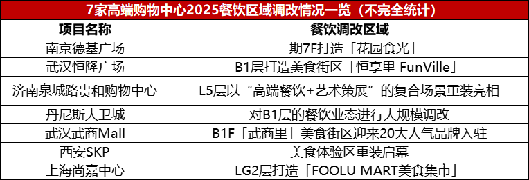 7家高端购物中心餐饮区域调改情况
