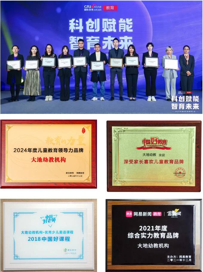 作为中国幼儿教育的早期探路者与坚定实践者,大地坚持教育初心,在近四十年的发展历程中,始终专注于幼教领域的专业追求与模式创新。通过持续构建高品质的教育体系与服务,大地先后荣获“深受家长喜爱儿童教育品牌”、“中国好课程”、“知名少儿英语品牌”、“儿童教育领导力品牌”等二十余项重要殊荣,在品牌建设、特色课程研发及幼教模式创新等方面始终走在行业前列,奠定了坚实的专业口碑与广泛的行业影响力。