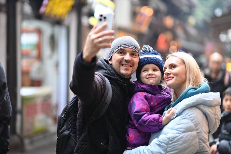 ▲2026年1月11日,沙坪坝区磁器口古镇,来自俄罗斯的游客正在拍照打卡。特约摄影 孙凯芳