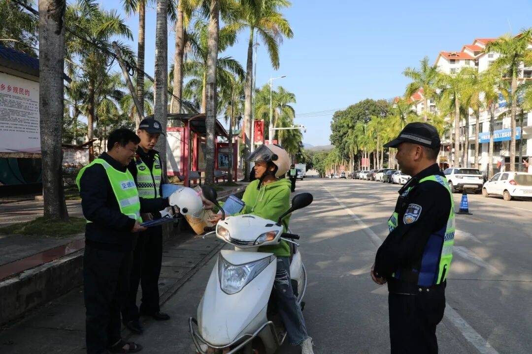 同时,政府部门人员与志愿者对过往驾驶人开展劝导,发放3C认证安全头盔及宣传单页,面对未佩戴安全头盔的骑乘人员,以家常话语提醒叮嘱,让安全劝导融入执法全程。