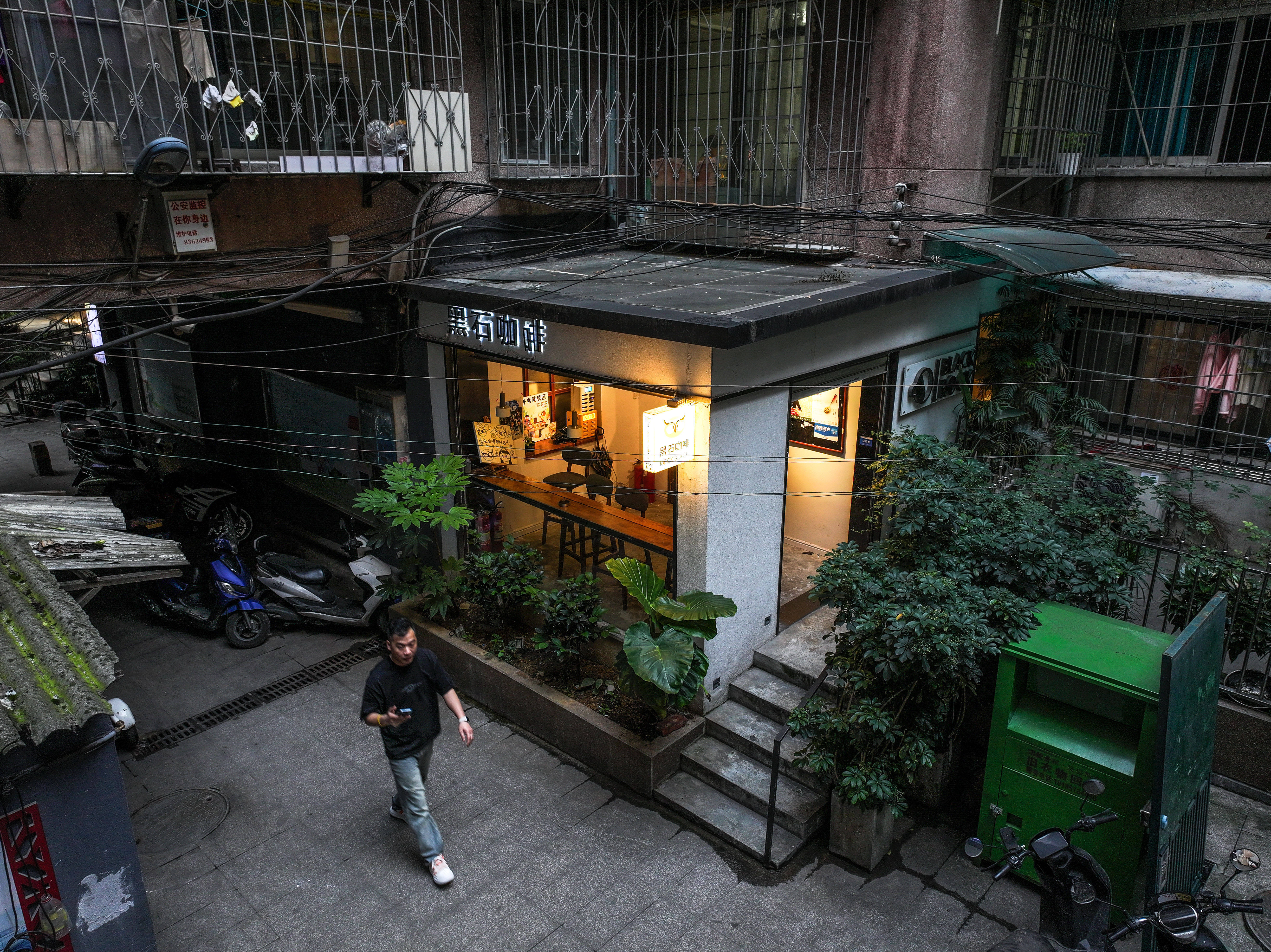 藏在贵阳市云岩区居民楼内的黑石咖啡店(2025年6月23日摄,无人机照片)。 新华社记者 杨文斌 摄