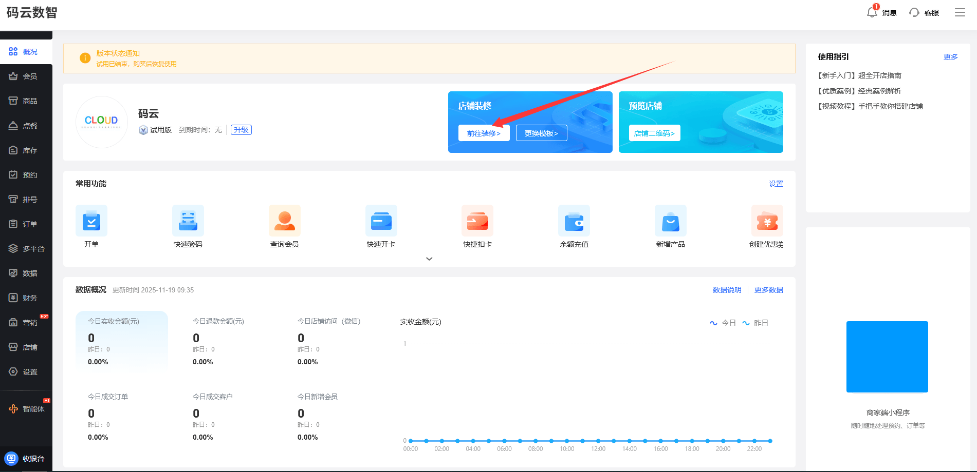 百度搜索【码云数智】,在【码云数智】平台注册账号,产品类型选择--门店系统