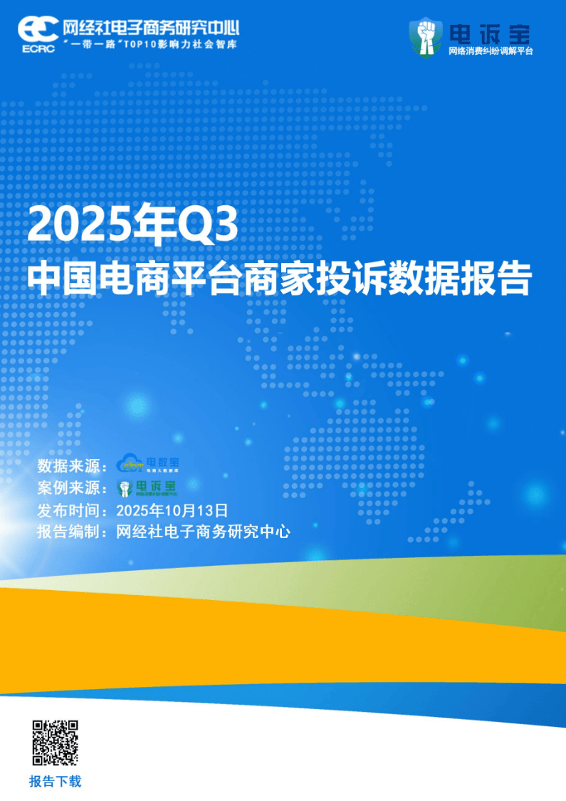 10月13日,依据网络消费纠纷调解平台“电诉宝”商家投诉通道Q3受理的全国电商平台大量商家投诉案例,网经社电子商务研究中心例行发布《2025年Q3中国电商平台商家投诉数据报告》(以网络消费纠纷调解平台“电诉宝”的 投诉数据为样本) 。报告涉及了综合电商、 直播电商、B2B电商、 电商服务商等领域, 并公布了Q3电商平台商家投诉数据及十大典型案例,通过这些投诉案例可窥见当前电商平台商家困境。