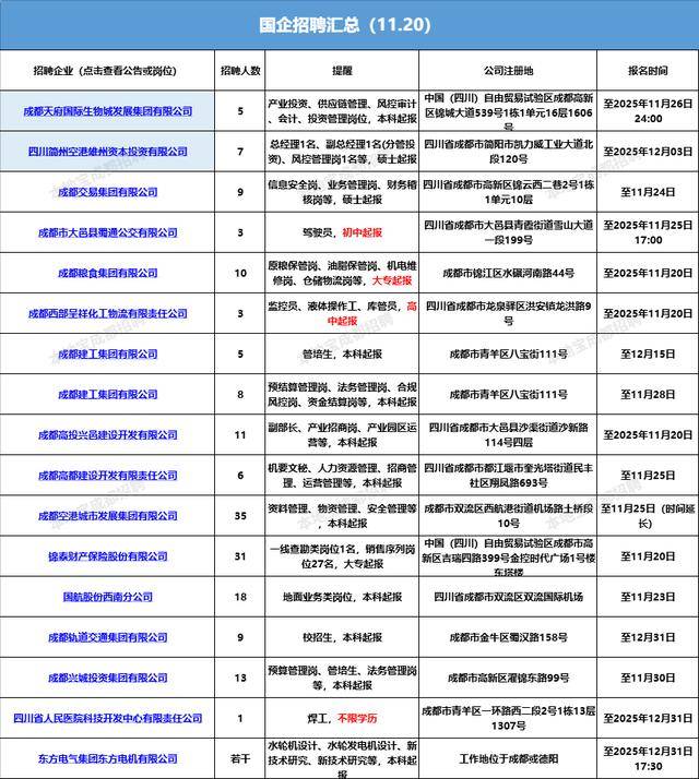 2、报名方式:通过成都空港城市发展集团有限公司官网发布的招聘公告中的链接报名。