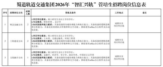 本次招聘共设财会金融、工程建设、交旅融合3个方向。