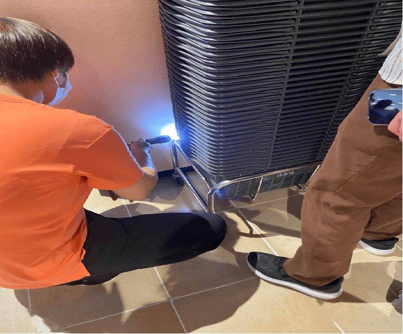 1-6 用竹签裹着湿巾擦拭货架托臂接口;