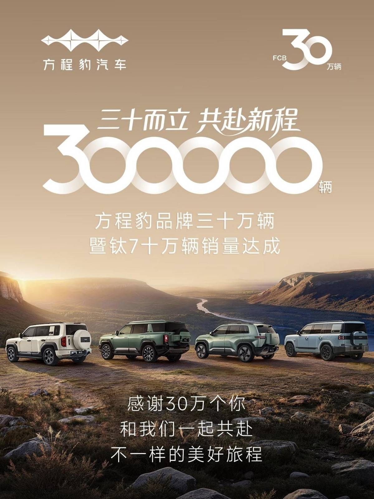 1月15日,方程豹汽车宣布品牌累计销量突破30万辆,不仅成为最快达成30万辆的新势力品牌TOP2、更是20-30万辆新势力品牌增速TOP1。