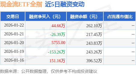 证券之星消息,1月22日,现金流ETF全指(563390)融资买入117.84万元,融资偿还73.18万元,融资净买入44.66万元,融资余额262.1万元,近20个交易日中有11个交易日出现融资净买入。