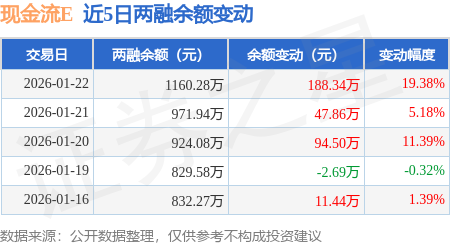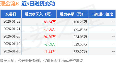 证券之星消息,1月22日,现金流E(159222)融资买入372.46万元,融资偿还184.13万元,融资净买入188.34万元,融资余额1160.28万元,近3个交易日已连续净买入累计330.7万元。