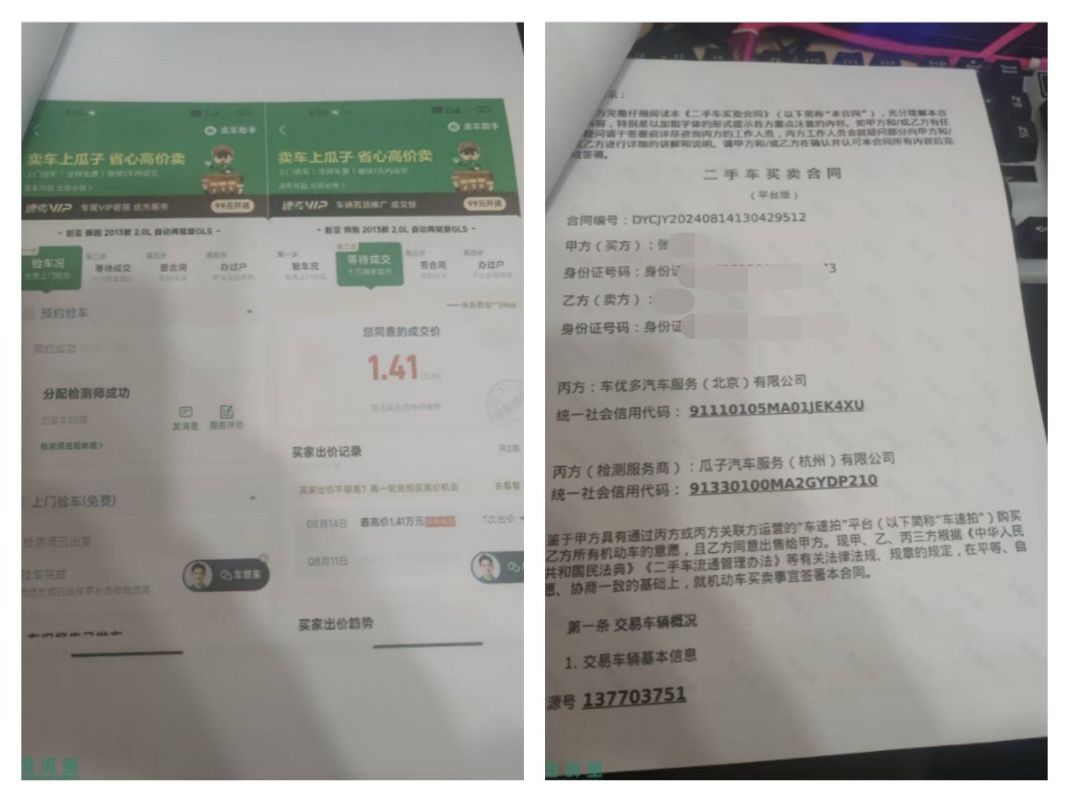 12月20日,徐先生向电诉宝反映,其于2025年11月14日将一台丰田汽车出售给“瓜子二手车”平台,双方协议约定在2025年12月15日前完成车辆过户手续。到期当日,该用户查询平台显示车辆“已过户”,但通过官方平台及车管所核实,发现该车实际并未办理过户且过户材料涉嫌造假。徐先生表示,因车辆未能如期过户,导致其无法享受汽车厂家提供的4000元置换补贴,且依据双方合同条款,违约方需向对方赔偿车辆价格的30%作为违约金,并弥补损失,但协商进展不顺,遂发起投诉。