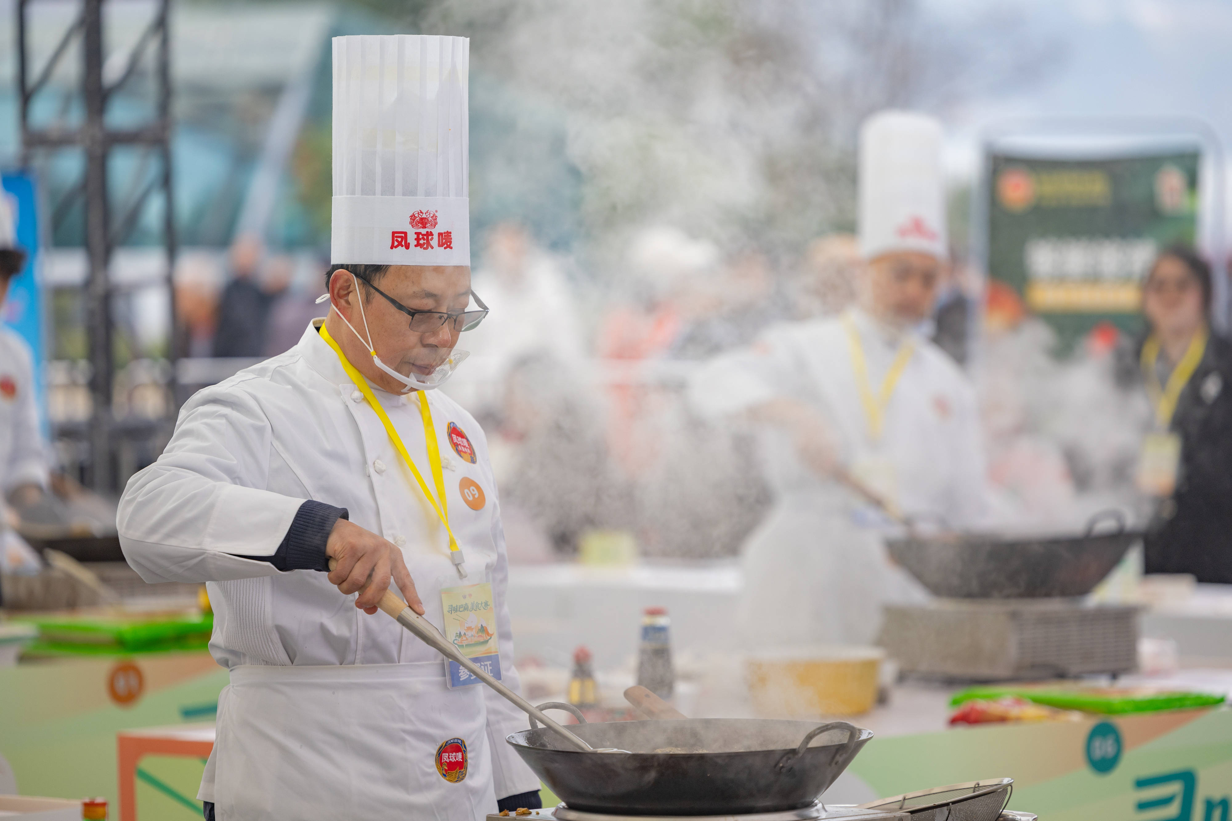 1月23日,参赛选手现场烹制当地特色美食。 新华社记者 黄伟 摄