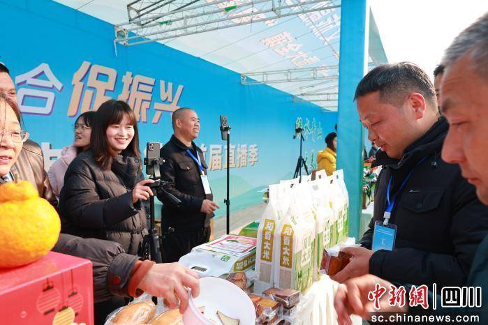 直播展销区同样人气十足。活动现场精心设置四大特色展区:非遗技艺展区集中呈现充国草木染、宋锦手作等传统瑰宝;大美全乡农产品展区亮出乡土菜籽油、稻香大米等“土味珍品”;“好充食”展区集结有机草莓、西凤脐橙等优质果蔬;加工农产品展区汇聚狮子糕、红苕酥等特色美食。各摊位前咨询、品尝、购买者络绎不绝。大V、网红联动本地主播组成的助农直播团穿梭在各个展位间,通过多平台同步直播,带领广大网友“云购”乡土好物,实现线上线下双向引流。
