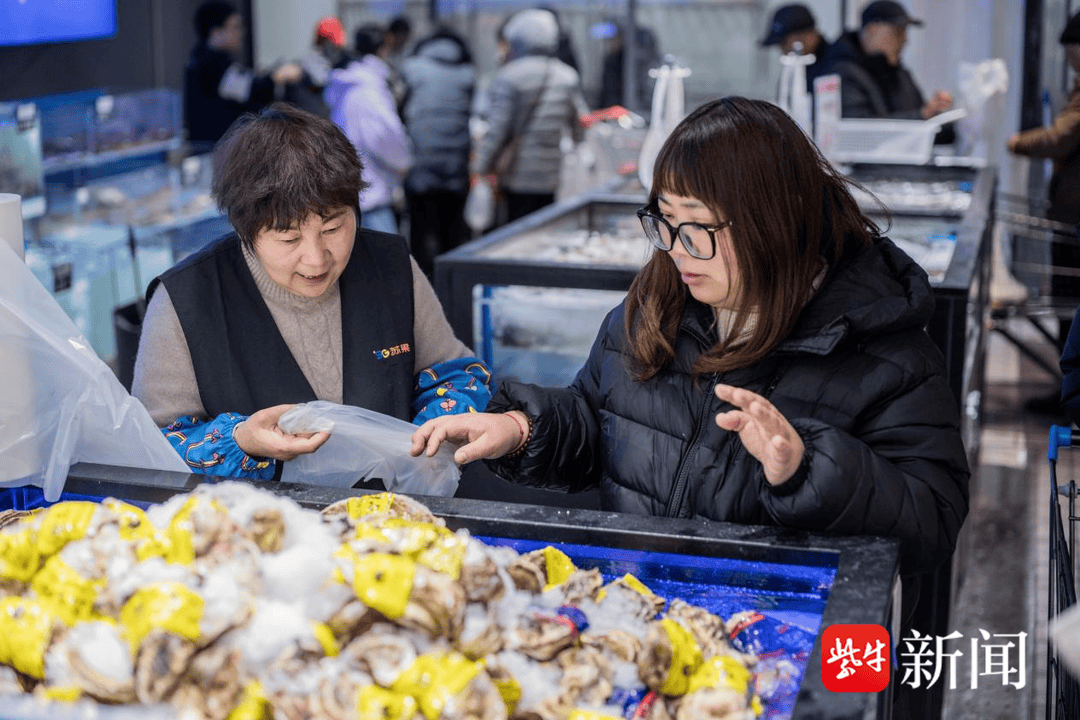 超市入口处的果蔬区化身为一座“四季水果图鉴馆”,紫红发亮的智利车厘子、清甜多汁的云南高山蓝莓、色泽鲜红的丹东草莓等精品鲜果集中陈列,极大丰富了消费者的年节果盘。为满足家宴需求,水产区实现了重磅升级,帝王蟹、珍宝蟹、乳山生蚝、基围虾等鲜活水产通过专业化冷链实现“鲜货直送”,让年夜饭的餐桌更加丰盛。同时,华润万家自有品牌商品矩阵也重点推出了润家有机亚麻籽油、润家坚果、有机西梅干、低GI五黑坚果脆、低GI高膳食纤维南瓜籽酥等优质优价好物,以及东阿阿胶桃花姬低糖阿胶糕等低负担、高营养的品质好物,为消费者提供了年货新选择。