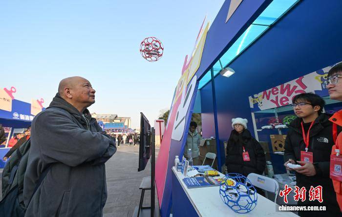 1月23日,市民体验飞行相机。当日,2026浙江新春消费季主场活动在杭州举行,8个主题展区的近300个品牌亮相。外骨骼机器人、智能眼镜、无人机等科技“新年货”吸引民众关注。中新社记者 王刚 摄