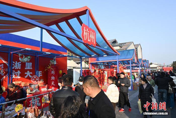 1月23日,2026浙江新春消费季主场活动在杭州举行,8个主题展区的近300个品牌亮相,琳琅满目的年货吸引民众。中新社记者 王刚 摄