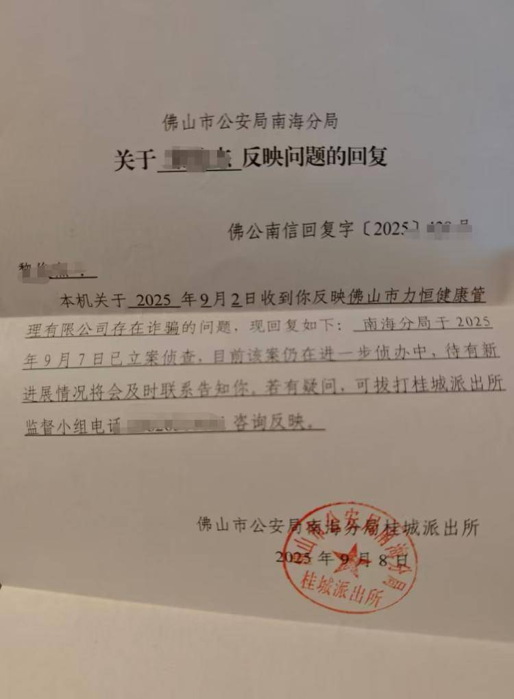一份“佛山市公安局南海分局回复”显示,该局于2025年9月7日立案侦查,目前仍在进一步侦办中。