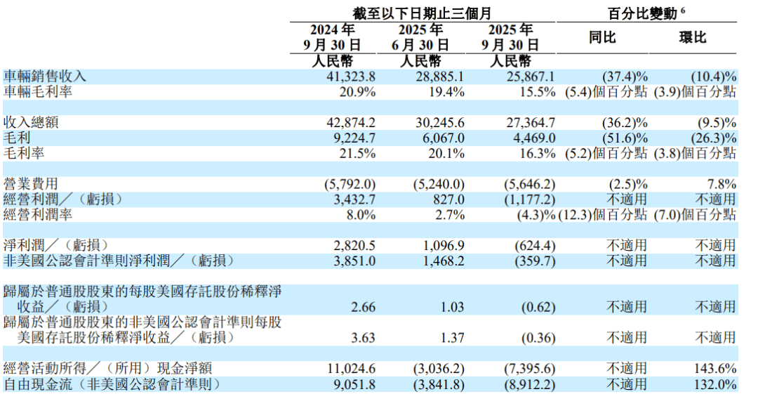 因为销量不太给力,2025年这家曾连续11个季度盈利的新势力,在三季度彻底破功:第三季度理想汽车营收约274亿元,同比大幅下滑36.2%;环比亦减少;