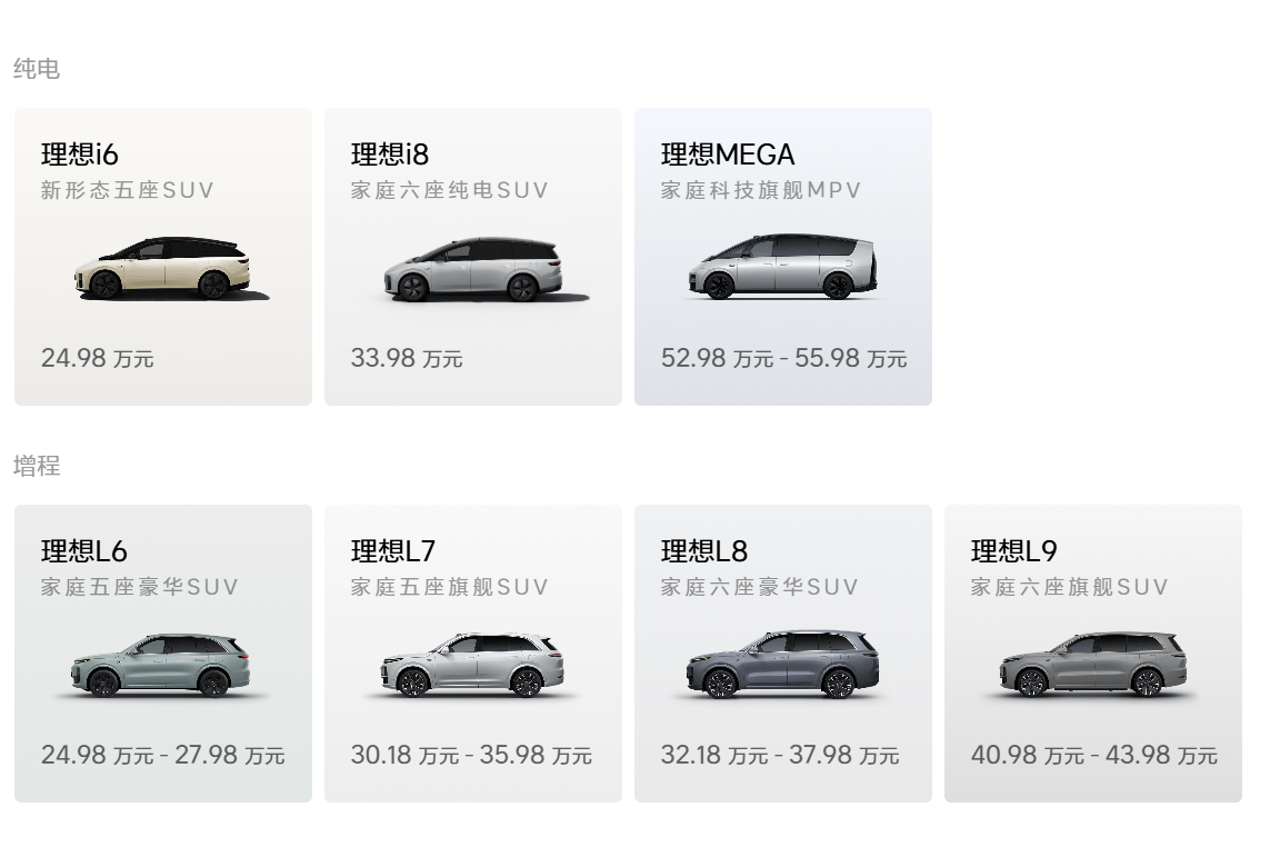 实际上,理想汽车在2025年加速了纯电产品线的布局,期内发布了i系列的车型i6,i8,目前来看销量不算差,但也谈不上多好。