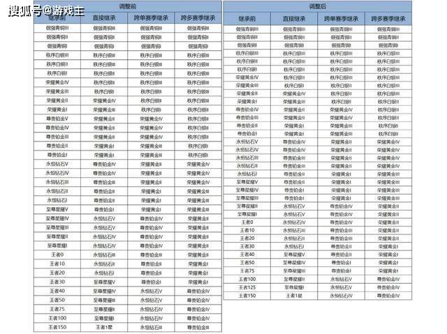 紧接着,再把王者100星及以下的继承段位降低5星,比如荣耀王者以前会继承到星耀3,以后则是星耀4,以此类推。