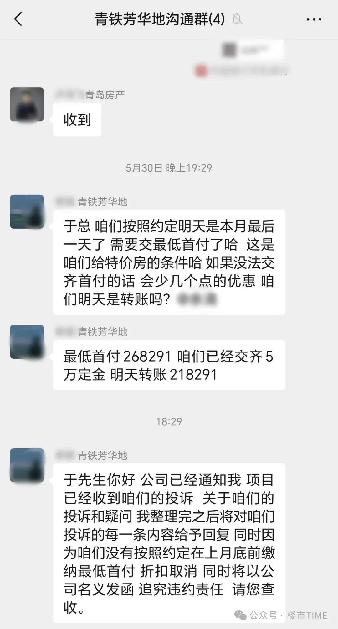 白纸黑字的认购书明明约定6月15日前支付首付,开发商却出尔反尔,以“特价房”“少优惠”之名强行要求提前支付首付,后又因我依法维权提出投诉,竟以“取消折扣”“追究违约责任”相威胁。这种店大欺客、仗势欺人的行径,哪里还有半点企业的社会责任感?