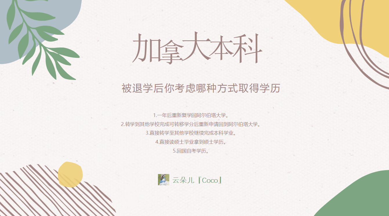 2.转学到其他学校完成可转移学分后重新申请回到阿尔伯塔大学。