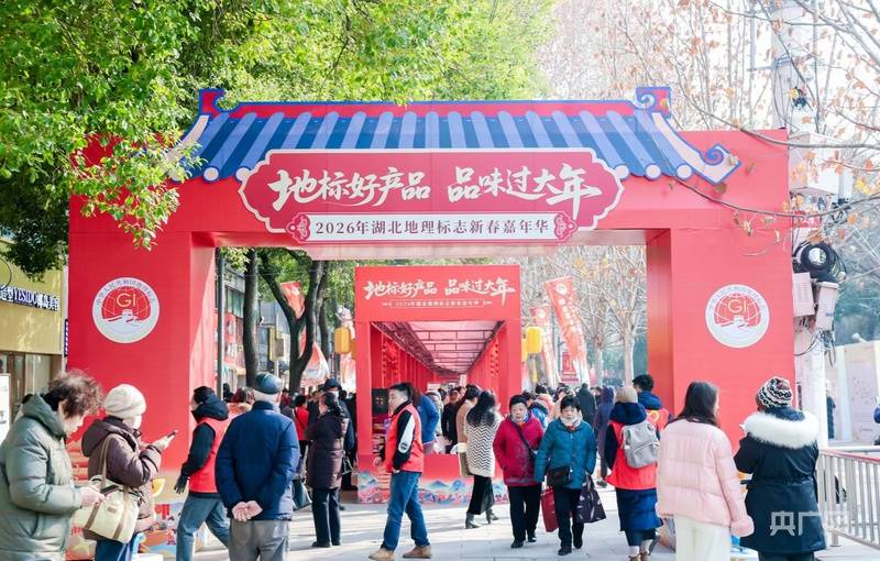 央广网武汉1月24日消息(记者邓子依)为深入推进品牌强省建设,发挥地理标志在弘扬荆楚文化、赋能乡村振兴中的重要作用,激发消费市场活力,1月23日,由湖北省知识产权局主办的“2026年湖北地理标志新春嘉年华”在武汉市武昌区水果湖步行街启幕。活动以“地标好产品 品味过大年”为主题,汇聚来自全省17个市州的103件地理标志特色商品,设置六大展区,集中呈现湖北地理标志发展成果,为市民打造集品质消费、文化体验、知识科普于一体的新春盛会。