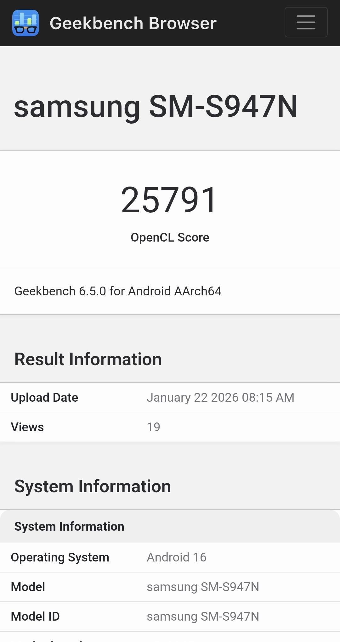 在最新泄露的跑分图中,搭载 Exynos 2600 的 Galaxy S26+(型号 SM‑S947N)取得了 25791 分的 OpenCL 成绩,与骁龙 8 Elite Gen 5 机型的同类成绩几乎持平,部分对比中甚至实现了约 21% 的领先幅度。